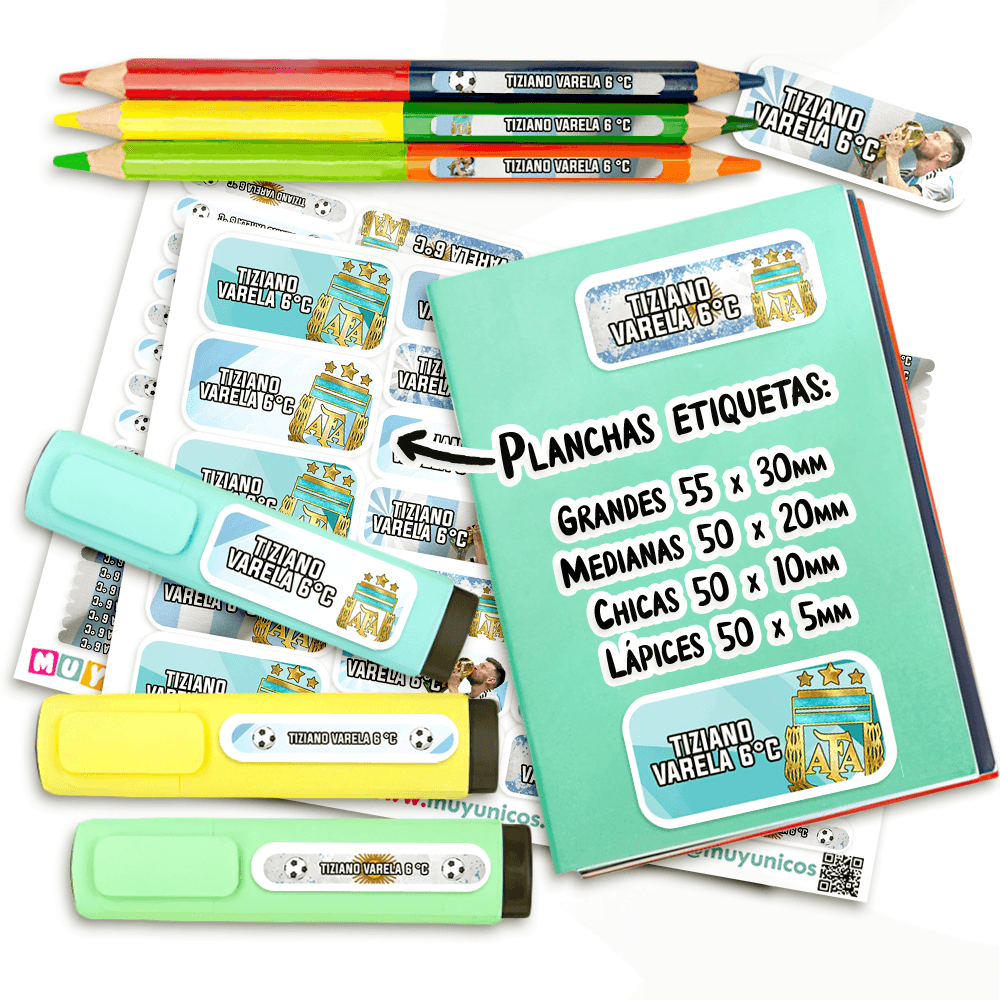 Etiquetas Escolares para Imprimir | Argentina Campeón (Archivo Digital PDF)