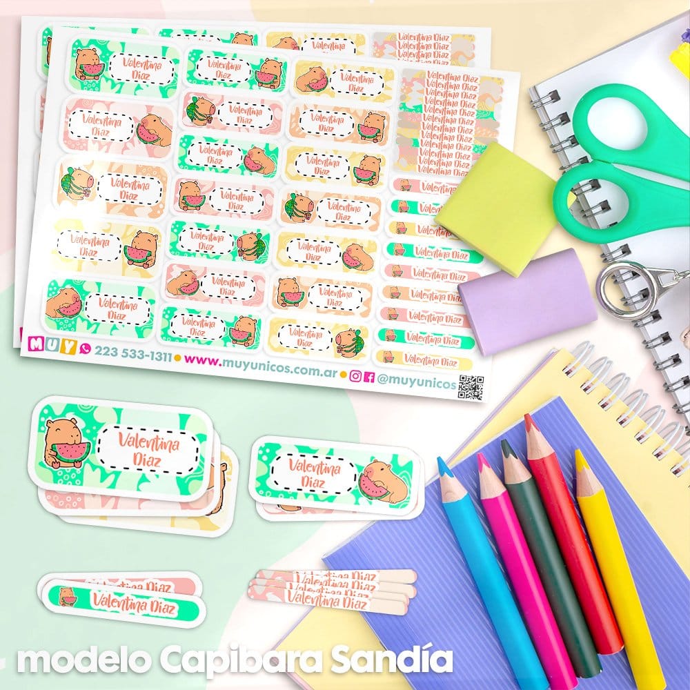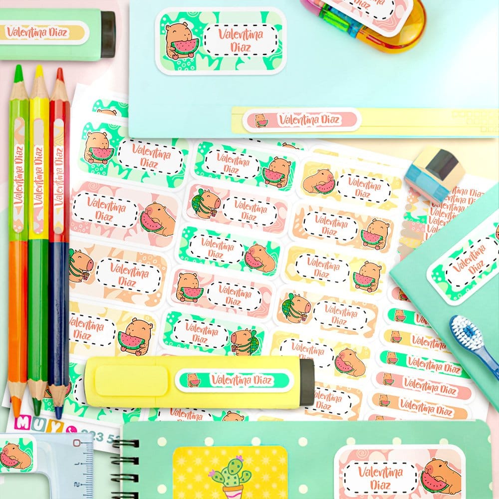 Etiquetas Escolares para Imprimir | Capibara Sandía (Archivo Digital PDF)