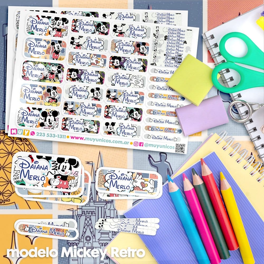 Etiquetas Escolares para Imprimir | Mickey Retro (Archivo Digital PDF)