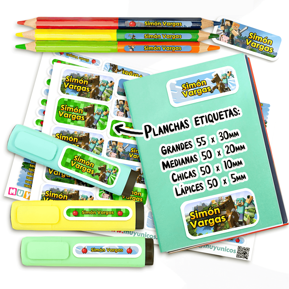 Recibe un kit de etiquetas escolares personalizadas con el nombre que elijas, listas para imprimir. Diseñamos este set a mano para ti y te lo enviamos en un archivo PDF. Este práctico archivo digital en formato PDF de 14 páginas te permite imprimir las etiquetas que necesites, en el tamaño que quieras y cuantas veces desees. Tu compra incluye: Más de mil etiquetas personalizadas de distintos tamaños, diseñadas para adaptarse a todos los útiles y objetos personales. Etiquetas (5×3 cm): Ideales para cuadernos, carpetas, estuches, mochilas y loncheras. Etiquetas (5×2 cm): Perfectas para reglas, marcadores gruesos, sacapuntas, agendas y pegamento…
