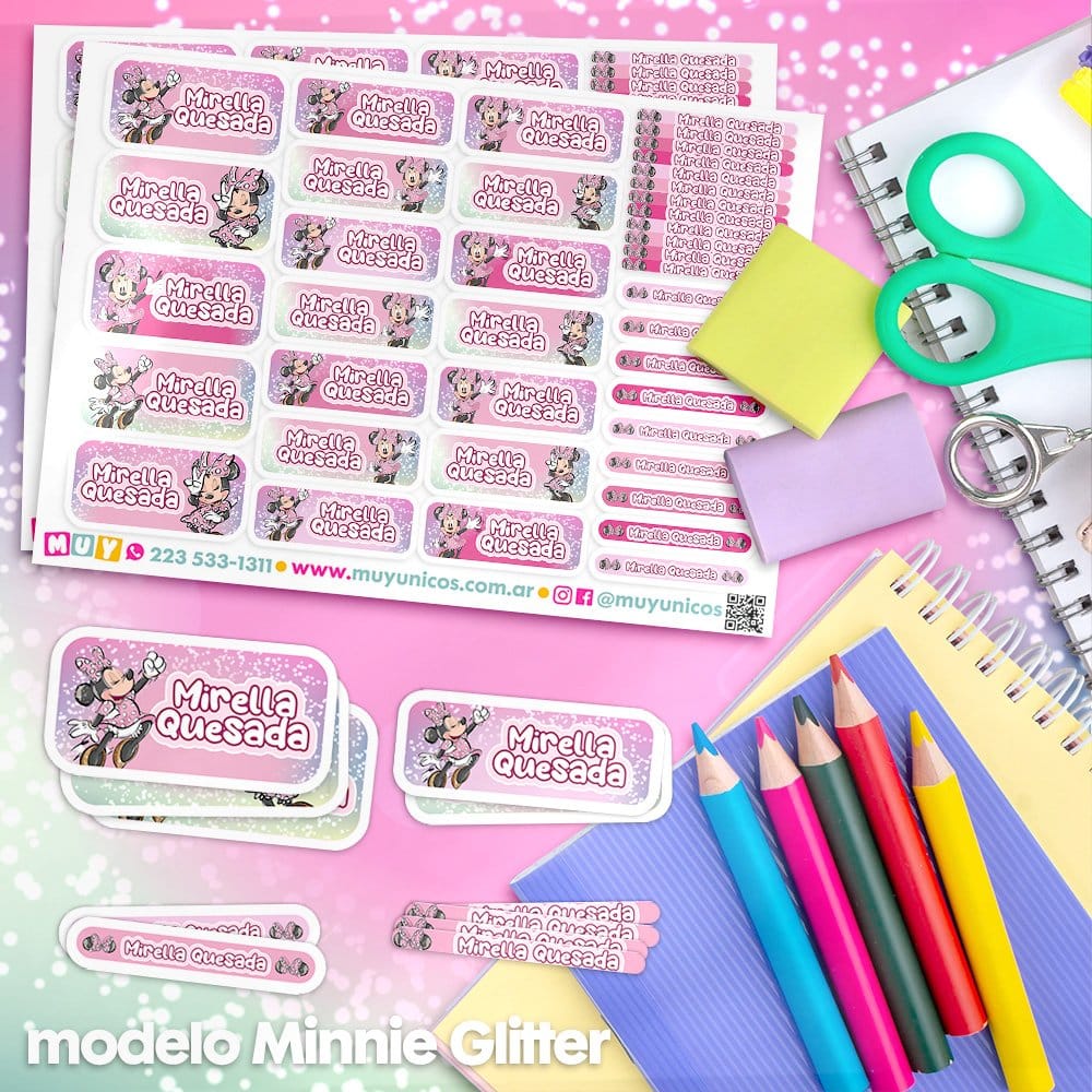Etiquetas Escolares para Imprimir | Minnie Glitter (Archivo Digital PDF)